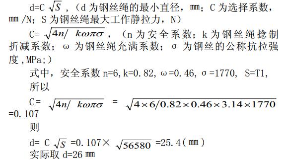 所以,與撬塊設備相匹配的是直徑為 26 ㎜,規格為6×7+IWR,強度級別為 1770Mpa 的鋼絲繩。