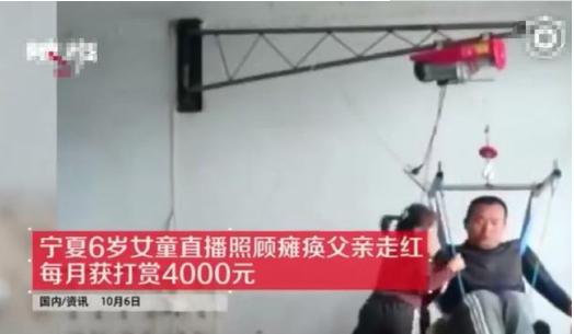 日前看到網絡上這樣篇文章,是6歲女童直播照顧癱瘓父親,依靠每月四千打賞生活,這是一個堅強的故事,讓我們來回顧一下這個事情的原委: